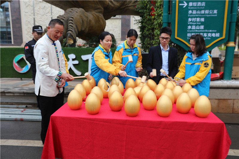 在升旗仪式上,客天下人整齐列队、挺拔站立,并认真聆听地产及景区酒店的全民营销政策宣贯。随后,河源客天下为11月“营销业绩突出”的销售精英、12月份的优秀员工及优秀管理者、优秀合作项目及优秀合作项目员工,颁发客天下定制奖杯、徽章,通过“砸金蛋”仪式随机发放丰富实用的奖品。